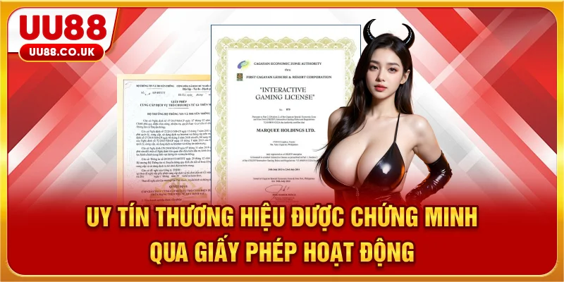 Việc sở hữu giấy phép hoạt động là lởi khẳng định của thương hiệu về uy tín trên thị trường trò chơi trực tuyến. Khi đồng hành cùng chúng tôi, hội viên có thể an tâm về toàn bộ quy trình minh bạch từ khi chơi game đến thanh toán lẫn bảo vệ dữ liệu. Đăng nhập UU88 mỗi ngày nhận quà thả ga, chinh chiến lâu dài.